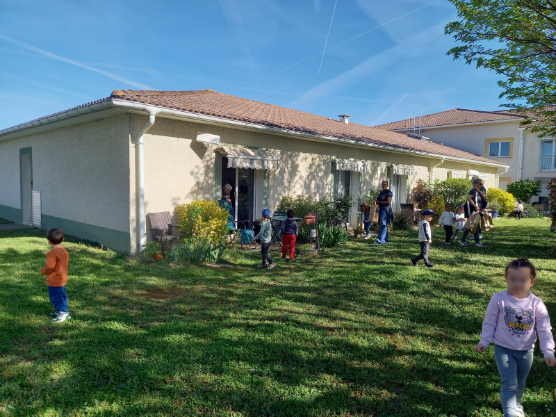 Aux Terrasses de Mailheaux, les rencontres entre générations font partie de notre quotidien. Récemment, nous avons eu le plaisir d’accueillir des élèves de l’école maternelle Pierre et Marie Curie pour une joyeuse chasse aux œufs dans nos jardins.